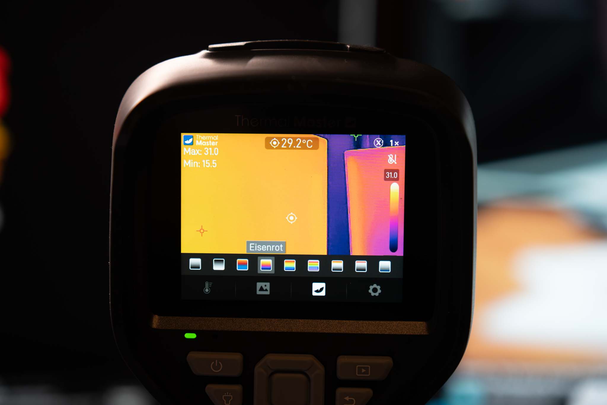 Allerdings ist das auch nicht ganz richtig, denn die eigentliche Auflösung liegt bei 256 × 192 Punkten. Allerdings wird das Wärmebild hochskaliert auf 512 × 384, was auch durchaus gut funktioniert.