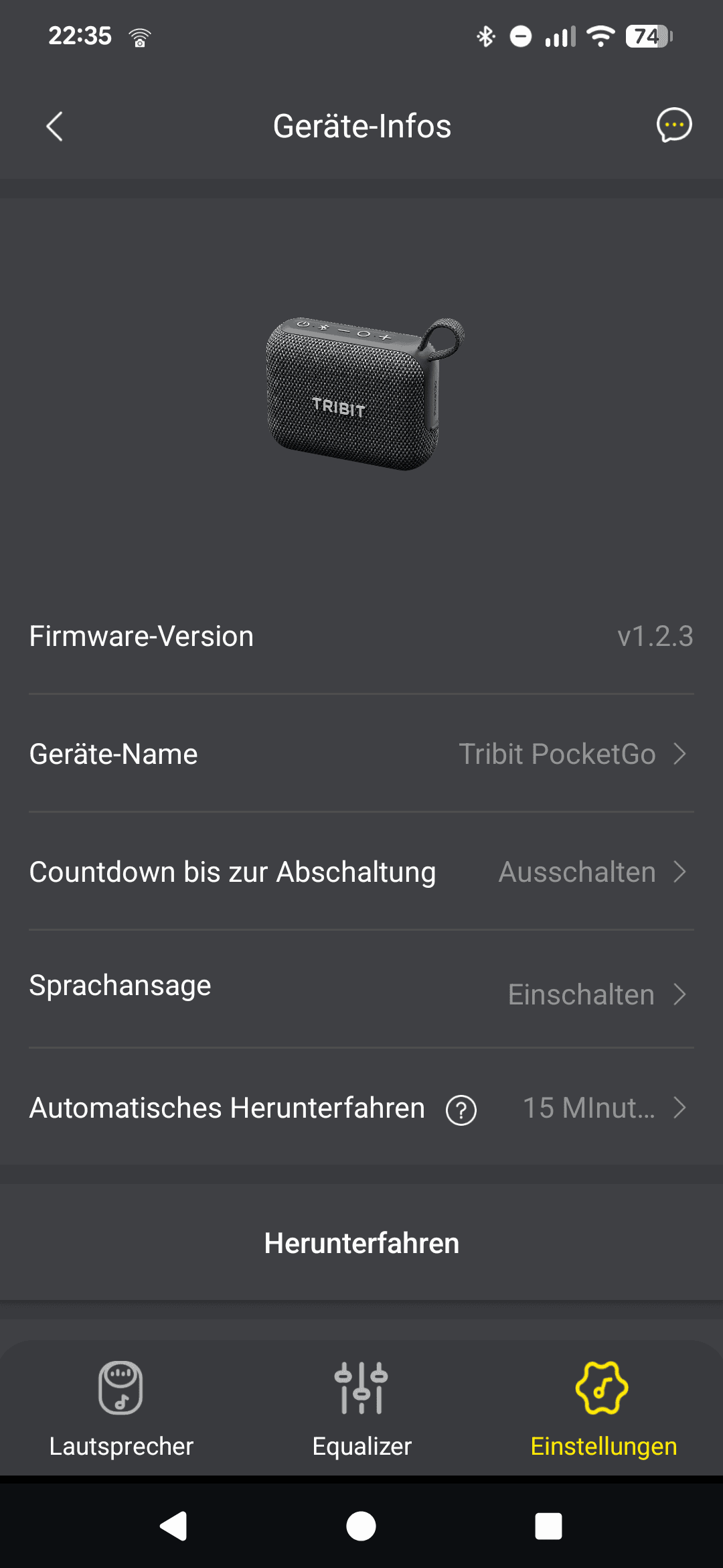 Eine Besonderheit bei einem so günstigen Lautsprecher ist der App-Support. Über die Tribit-App kannst du den Lautsprecher steuern, gewisse Verhaltensweisen anpassen, Firmware-Updates einspielen und wichtig: den EQ anpassen.