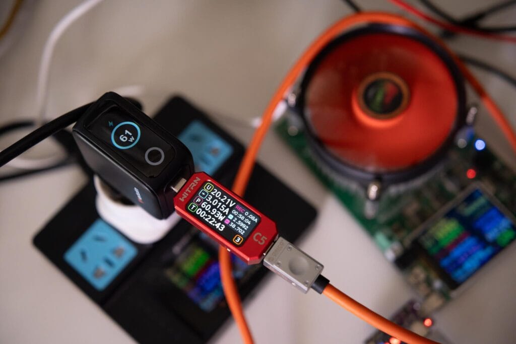 Im Leerlauf benötigt der Verbatim Mini GaN Charger 65W ca. 0,25 W. Das ist akzeptabel, gerade wenn wir das Display bedenken.