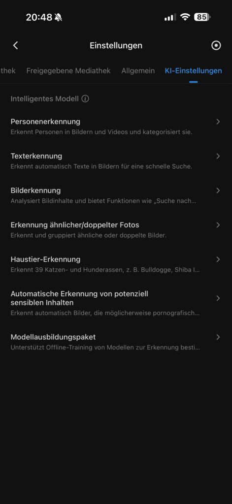 Zudem kannst du Bilder in Alben sortieren, teilen (auch mit Passwort), auf einer Karte ansehen usw. Es gibt auch eine KI-Personen- und Objekterkennung. Erkannte Personen werden auf Wunsch in Alben gruppiert usw.