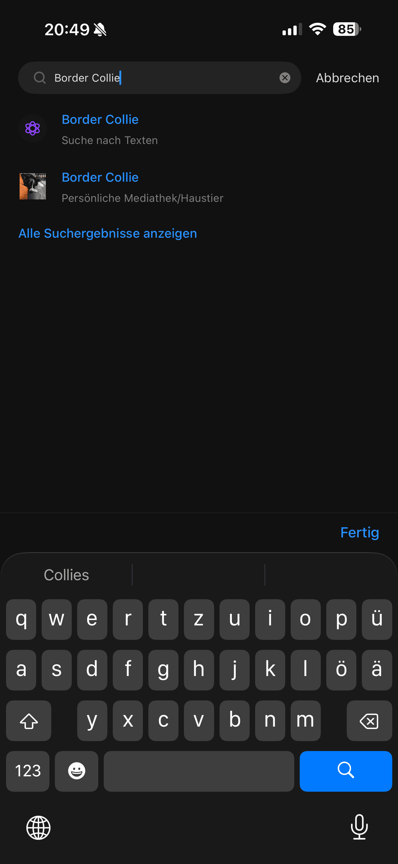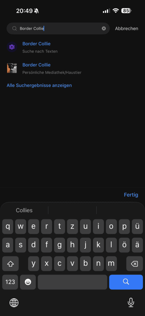 Neben Uliya haben wir noch ein paar weitere KI-Features. Die Universal Search ist eine lokale, textbasierte Suchfunktion. Damit kannst du Inhalte über „natürlich formulierte Suchanfragen“ finden.