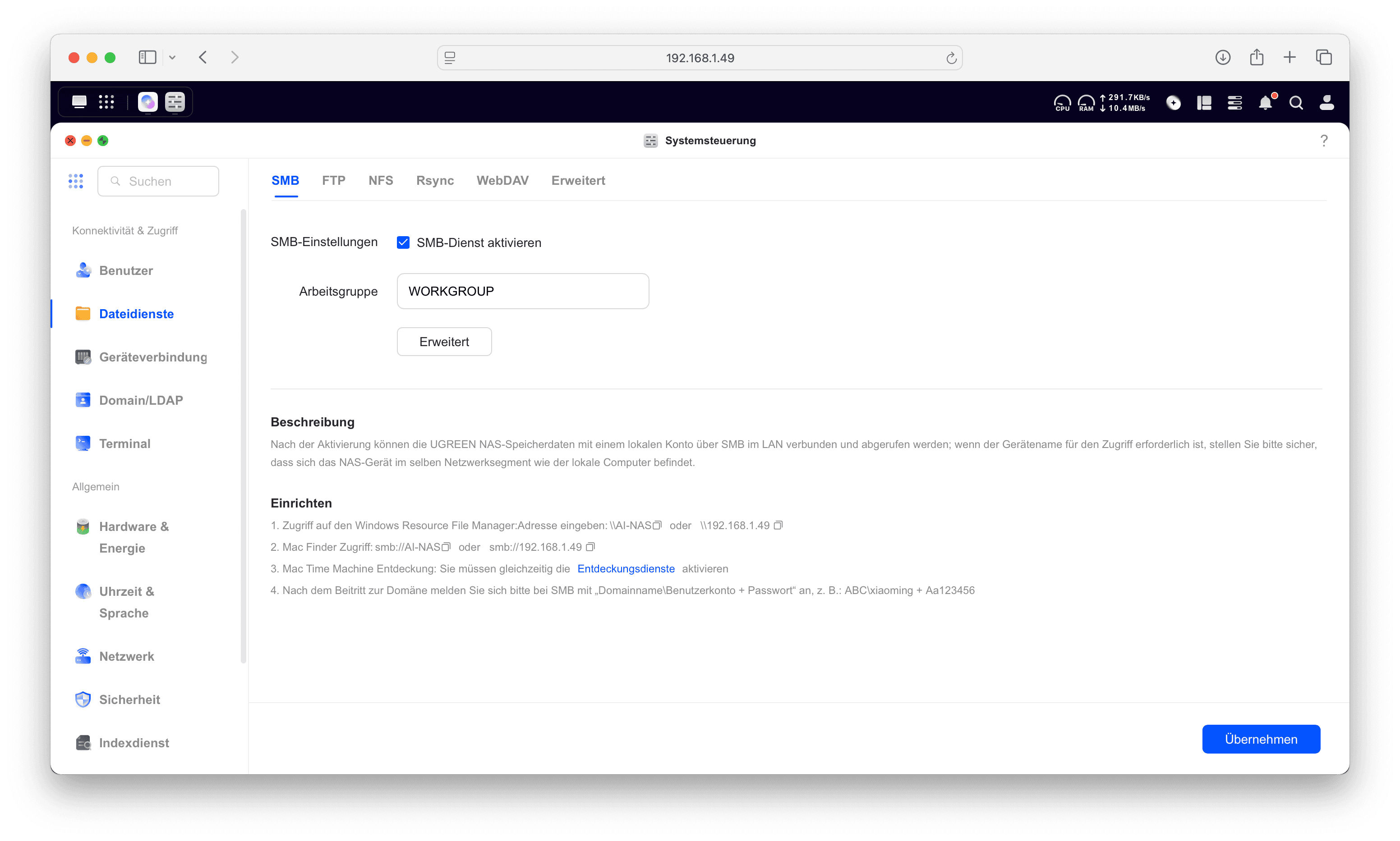 Damit unterstützt das NAS alle wichtigen Dienste.