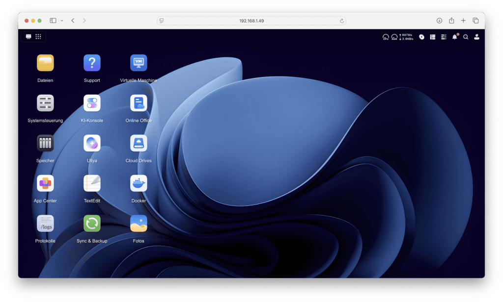 Neben der App besitzt das NAS auch eine vollständige WebUI. Wobei WebUI vielleicht der falsche Ausdruck ist,wir haben hier eine Benutzeroberfläche in deinem Webbrowser, die eher einem Betriebssystem entspricht.
