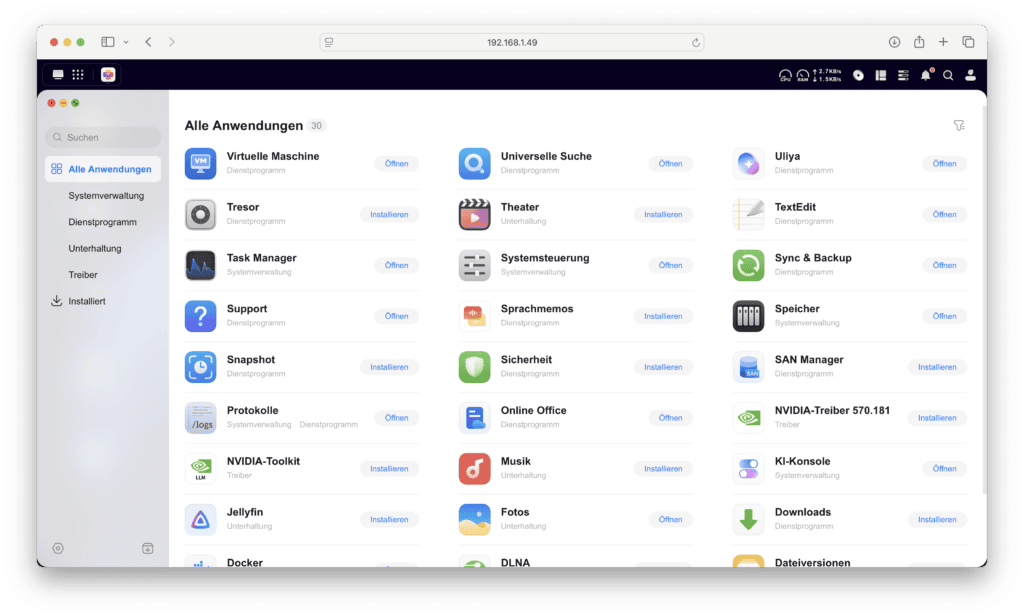 UGREEN bringt für beides eine entsprechende App mit, welche eine klare UI für das Installieren und Starten der jeweiligen virtuellen Anwendungen bietet.