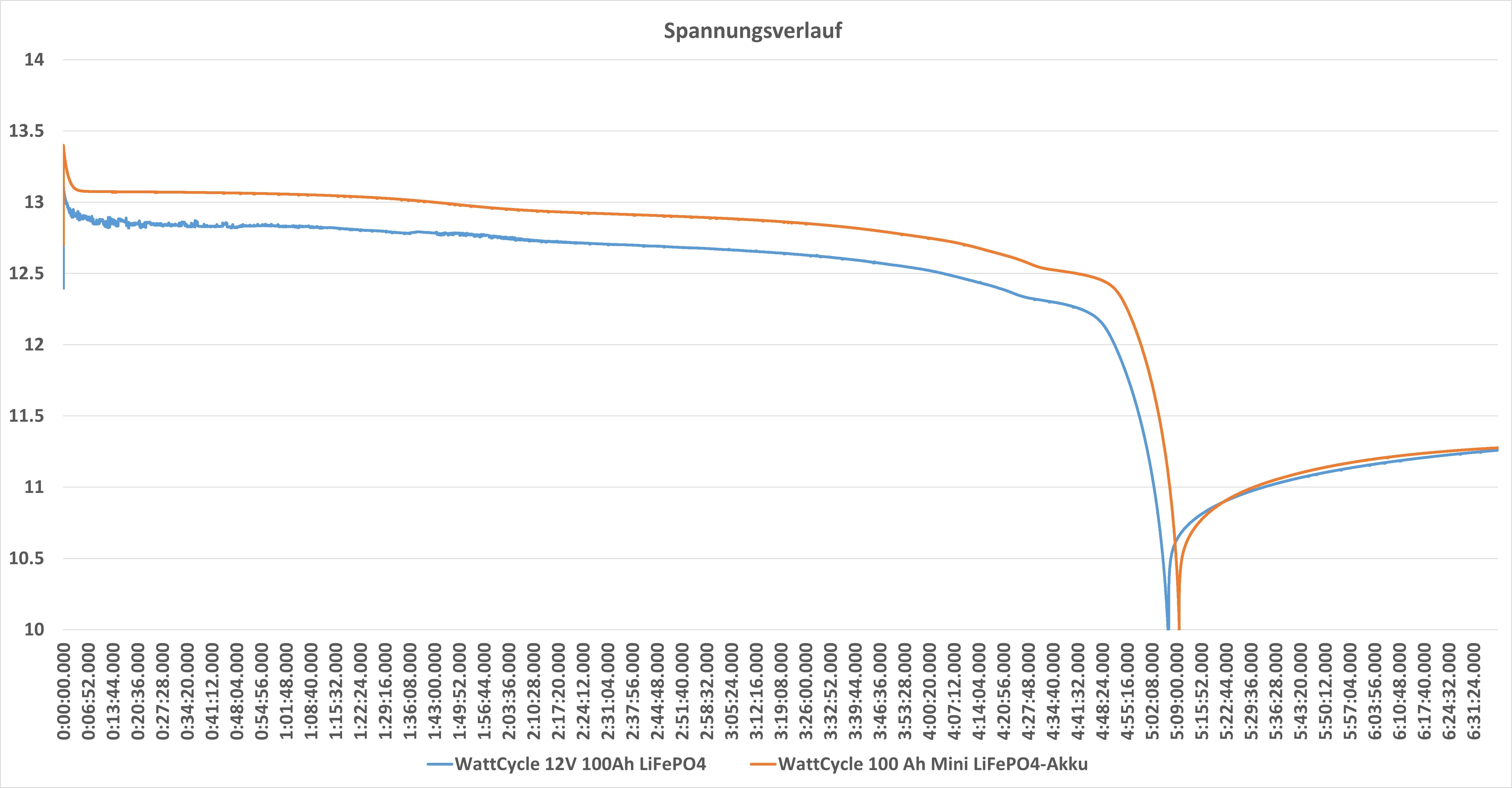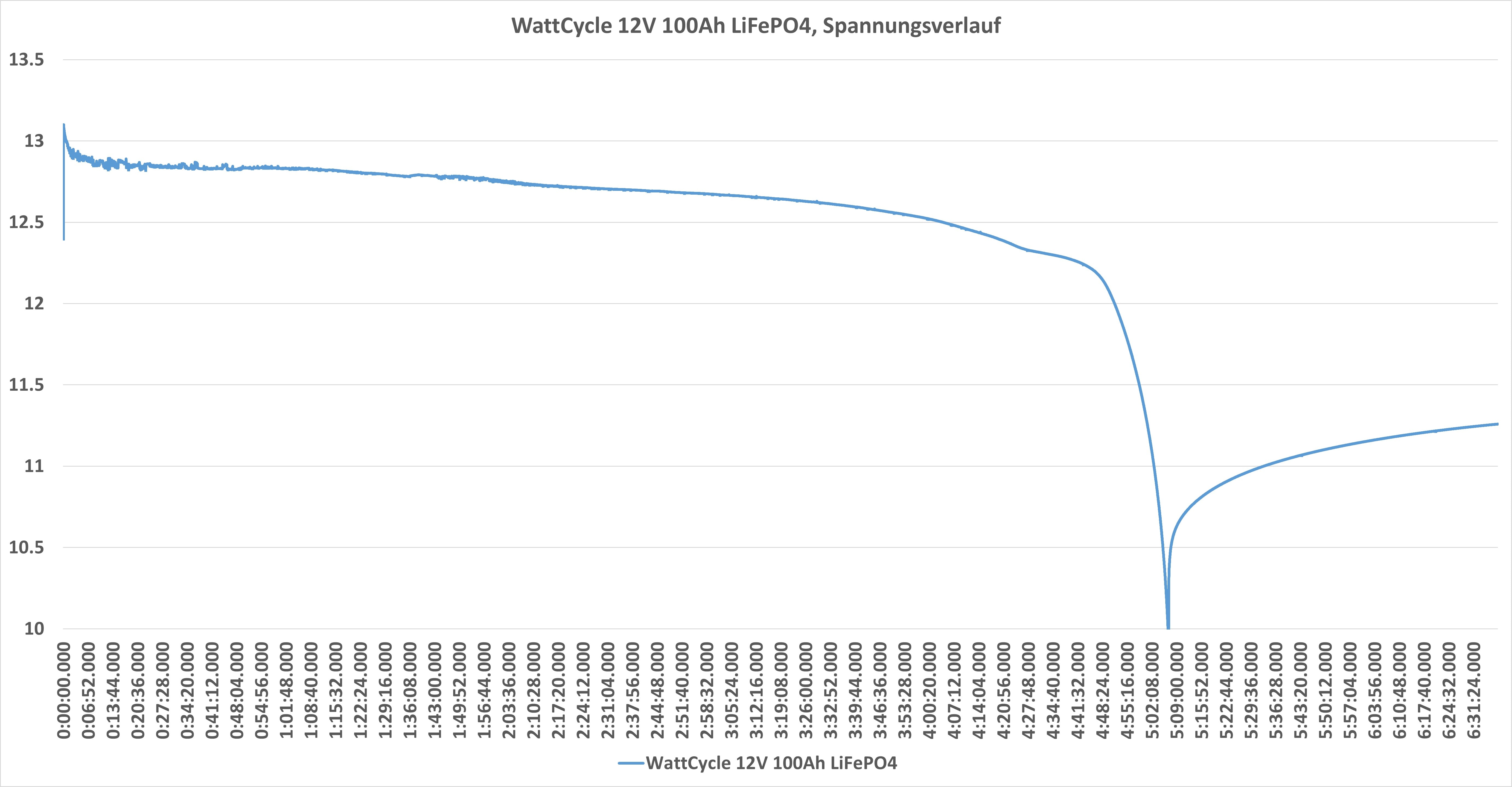 LiFePO4-Akkus haben traditionell einen sehr flachen Spannungsverlauf. Dies gilt natürlich auch für unseren WattCycle-Akku. Allerdings gab es hier eine kleine Überraschung.